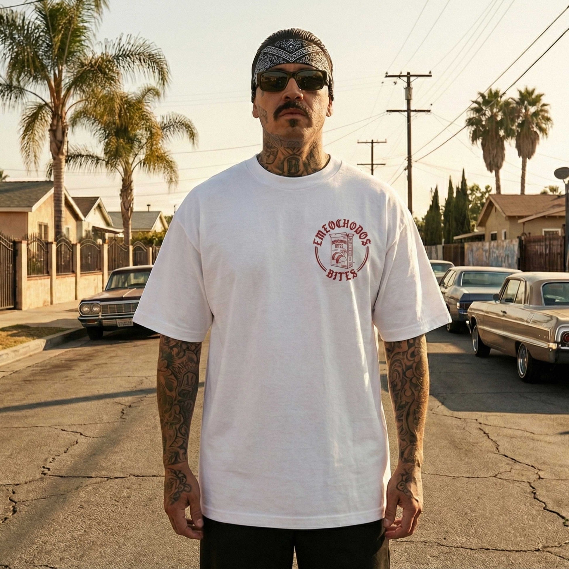 El gráfico trasero de gran tamaño presenta "Emeochodos Bites", el cereal "Taco Flavor" que solo los verdaderos conocedores entienden, ilustrado en un vibrante rojo sangre sobre un lienzo blanco impecable. Diseñada con un corte oversize moderno para ese flow relajado y callejero que buscas.
